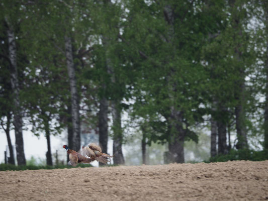 Iets verderop werden we getrakteerd op twee vechtende mannetjes fazanten. En nee, geen pauwen, zoals een voorbijkomende wielrenner dacht. Fietsen en beestjes: een ongemakkelijke combinatie. De winnende fazant kon trouwens zijn triomfantelijke blik nauwelijks verborgen houden.