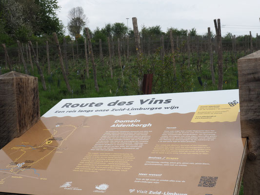 Zoals Mohammed naar de berg gaat als die het vertikt om naar hem te komen, zo zorgen wij ervoor dat Frankrijk - nu we er zelf niet naar toe kunnen - een beetje naar ons toe komt. De blikken cassoulet staan daarom voor het betere Franse culinaire gevoel in de bijkeuken te wachten voor het geval dat ‘corona’ ons toch nog gaat dwingen om ingeblikt voedsel te gaan nuttigen. Ook hoeven we voor de traditionele foto’s van ontluikende wijnstokken gelukkig niet de grens over. Op onze wandeling vandaag zijn we zo waar langs onze eigen Zuid-Limburgse ‘Route des Vins’ gekomen. In dit geval bij Domein Aldenborgh net buiten het – verder vooral bij wielerfanaten bekende - dorpje Eijs. Geweldig mooi hoe de jonge wijnstokken nu al beginnen te schieten. Lang leve de climate change 🤔!